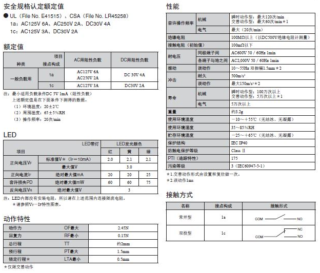 產品說明:大容量、緊湊型按鈕開關 ? 可作為大容量切斷電源開關使用。 ? 從微小負載(最小適用負載DC5V 1mA)到高容量負載都可開閉。