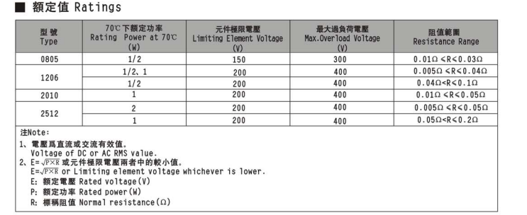 產品說明:尺寸: 2512 電阻: 5mΩ~50mΩ 誤差: ±1% 功率: 2W