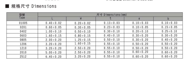 超小尺寸厚膜片式固定電阻器 RC-005B系列