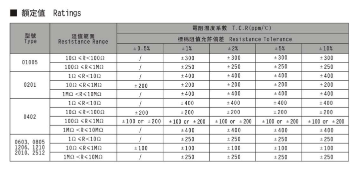 產品說明:尺寸: 0201 電阻: 500Ω~1KΩ 誤差: ±1% 功率: 1/20W