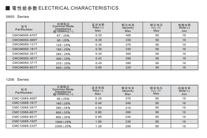 對(duì)高頻共模噪聲有良好的抑制作用; 對(duì)不同的噪聲水平和信號(hào)頻率,有67Ω~2200Ω可供選擇。