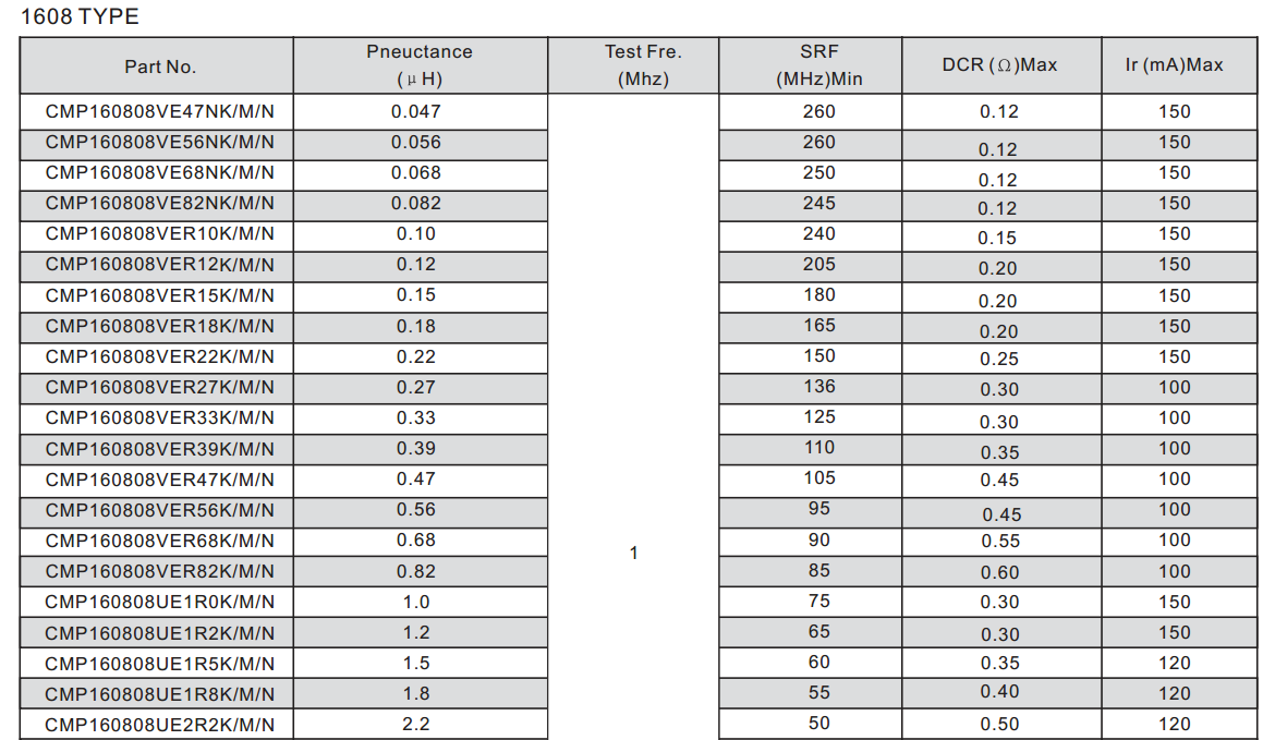 0603鐵氧體疊層片式電感