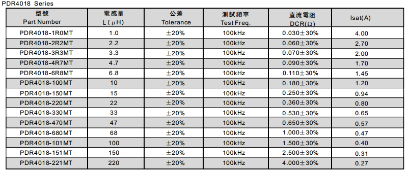 PDR4018-221MT功率電感