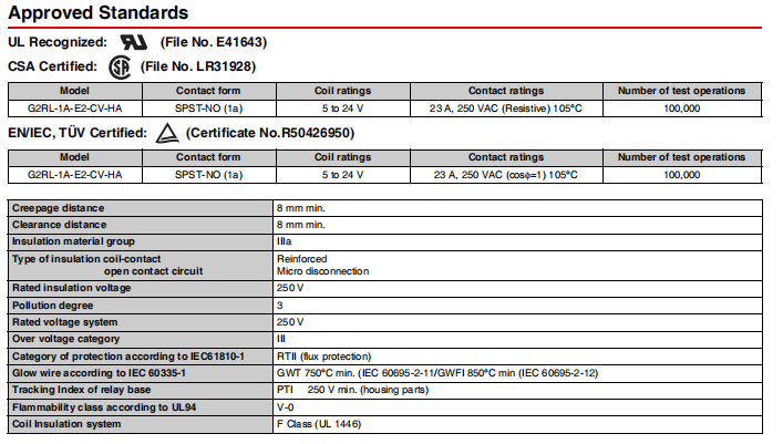高電流23 A,開關(guān)超過標(biāo)準(zhǔn)的G2RL型號。