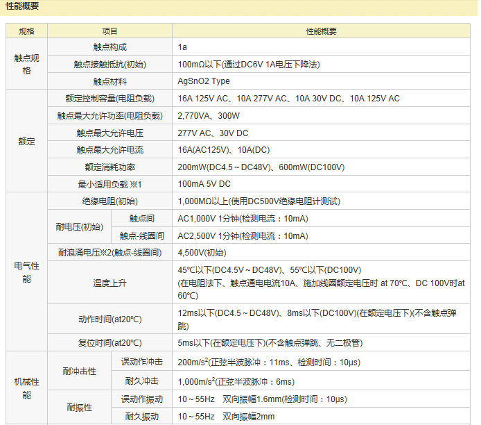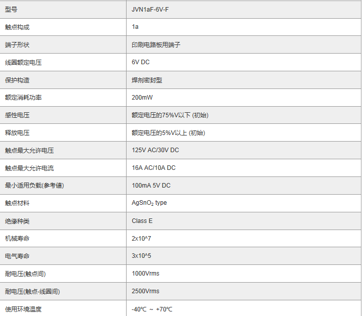 產品說明:1. 16A高容量 觸點容量備有16A 125V AC高容量型。 2. 小型高度10.9mm緊湊扁平型 底面積為16×22mm、高度10.9mm的小型扁平型。 3. 200mW的高感度 線圈消耗功率 200mW的高感度。 4. 觸點端子部的抑制溫度上升。 觸點端子比既有產品JV繼電器大幅度提升了厚度。因此,即使大容量通電時,也可將端...