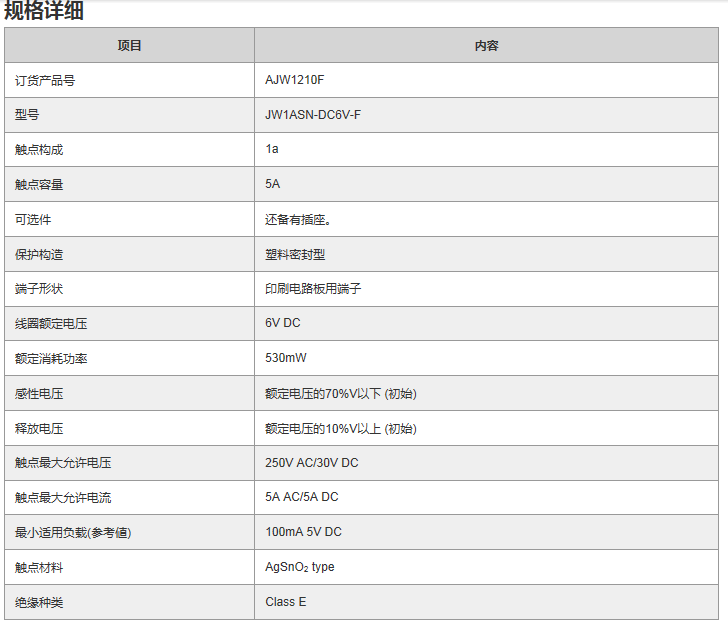 產品說明:1. 安裝面積小、窄長型。 底面積為28.6mm×12.8mm。高度為20mm省空間窄長型。 2. 符合各種安全規格認證。 獲得UL、CSA、VDE、SEMKO、FIMKO、SEV、TUV、TV-5(僅限1a型)。符合電氣用品安全法(300V以下)標準。耐電壓達到AC5,000V(觸點-線圈間)。 3. 耐浪涌性強的繼電器。 耐浪涌電壓達到10,000V(觸點-...