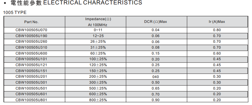 產品說明:在同樣的尺寸下較插裝磁珠可產生較高的阻抗值 與傳統的磁珠不同,片式磁珠無引線,只要簡單的安裝到PCB板上就可抑制EMI和RFI 磁珠的形狀和尺寸都符合EIA標準,可以利用SMT設備進行自動貼裝 應用: 用于數據傳輸線、信號線、電源部分及回路的抗干擾。