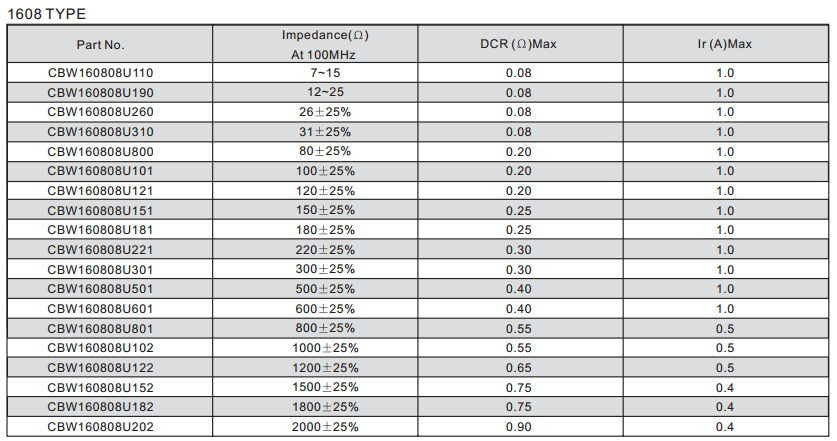 產品說明:在同樣的尺寸下較插裝磁珠可產生較高的阻抗值 與傳統的磁珠不同,片式磁珠無引線,只要簡單的安裝到PCB板上就可抑制EMI和RFI 磁珠的形狀和尺寸都符合EIA標準,可以利用SMT設備進行自動貼裝 應用: 用于數據傳輸線、信號線、電源部分及回路的抗干擾。