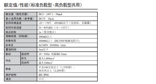? 具有標(biāo)準(zhǔn)操作負(fù)載(1.57N)與高操作負(fù)載(2.26N)兩種類型。