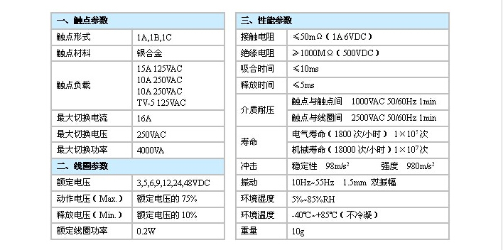 觸點容量:15A 125VAC,10A 250VAC,16A 250VAC