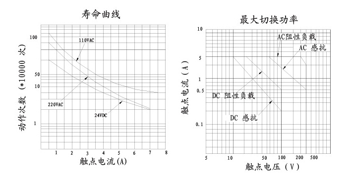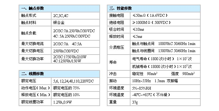 觸點容量:2C/3C:7A 250VAC/30VDC 4C:5A 250VAC/30VDC