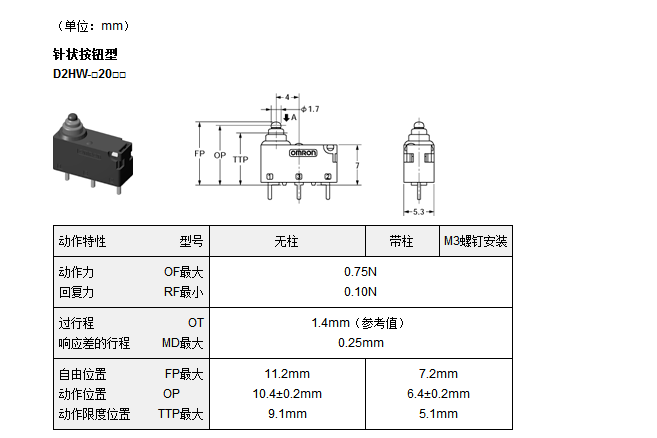 產(chǎn)品說明:D2HW 密封型超小型基本開關(guān)