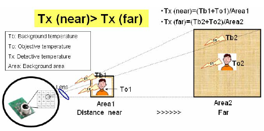 傳感器檢測目標區域的平均溫度,檢測溫度隨對象物體的接近而增高。