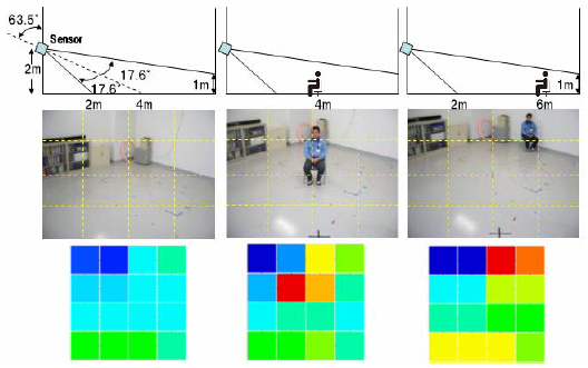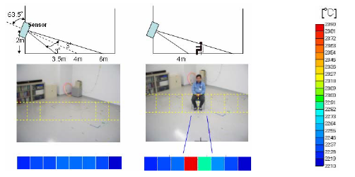 4x4 單元傳感器輸出各要素的16 種合計溫度值。有人存在時,檢測到的溫度比較高。