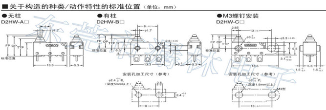2、密封型超小開關社內最小尺寸微動開關D2HW-C203ML