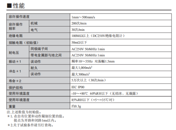 2.歐姆龍超小型(高6寬8X深4.2mm)、輕量(約0.3g)、3mm的長行程。