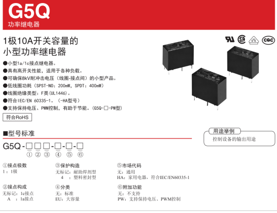 智能插座中重要器件是控制電路通斷的繼電器,而歐姆龍小型功率繼電器型號G5Q性能正符合智能插座,我們來了解下它的具體特色: